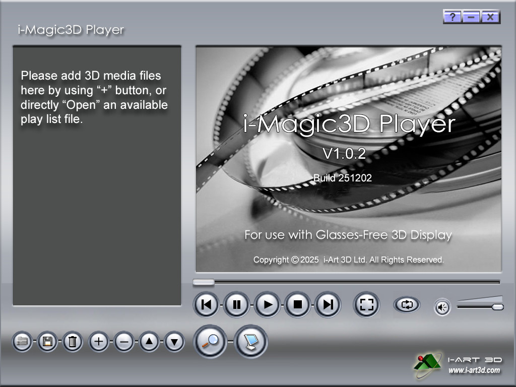 i-Magic3D Player is a 3D content playback tool tailored for "Glasses-Free 3D Display". It can instantly convert 3D content in "2D + Depth" format into multi-view 3D images and present vivid stereoscopic 3D visual effects through any LCD or OLED display with a normal 3D lenticular lens.