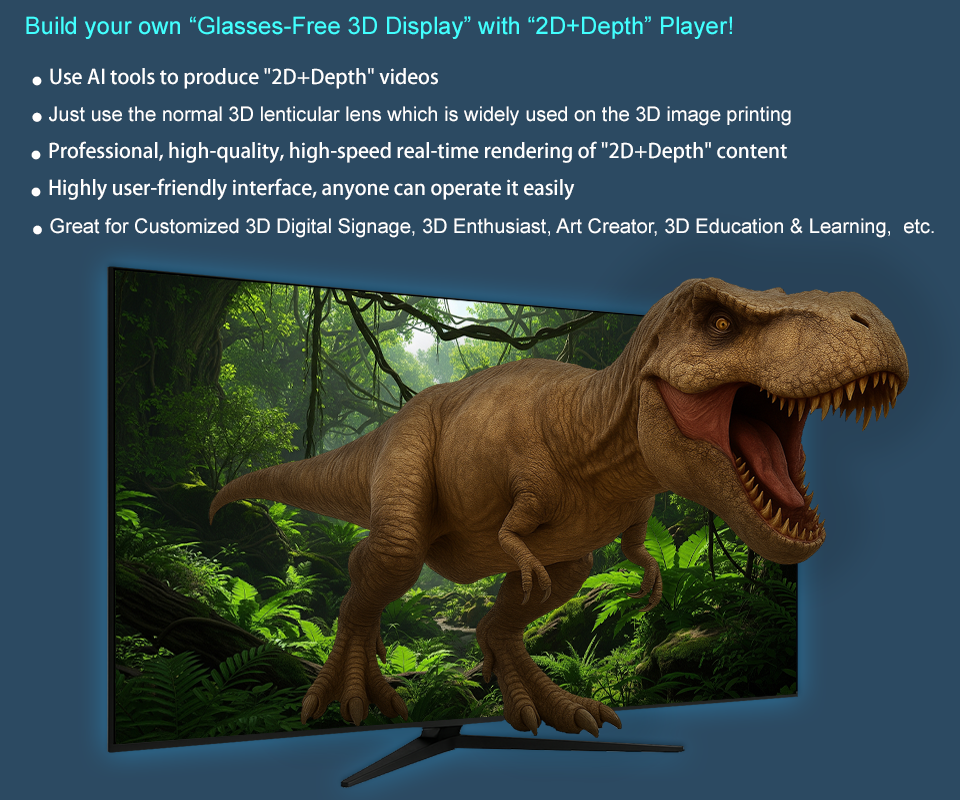 - All you need to do is prepare 3D content in "2D+Depth" format, and it can be played on OLED/LCD display panels of different sizes.